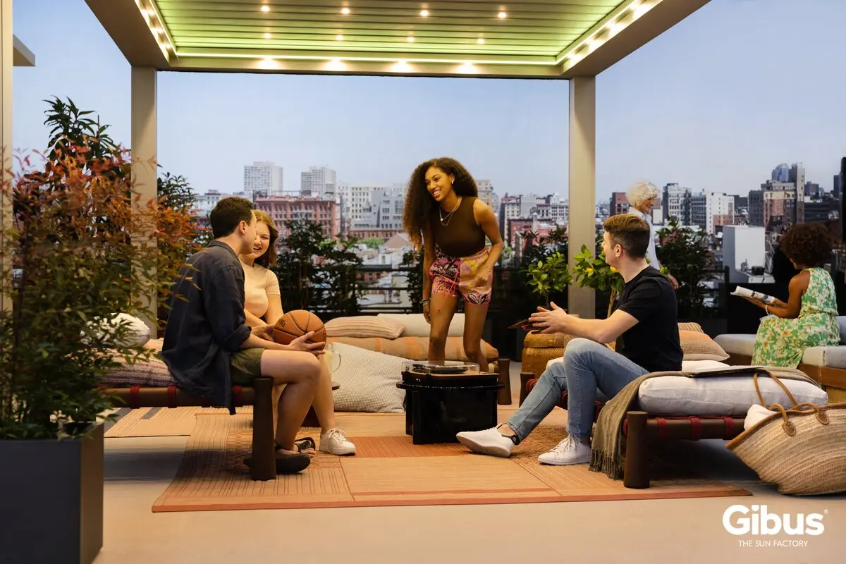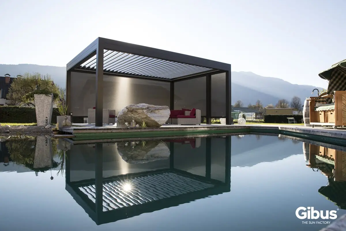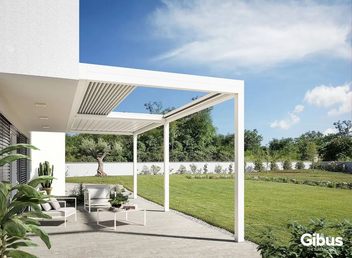 Le pergole bioclimatiche Gibus dialogano silenziosamente con la natura per offrirvi un benessere costante al mutare delle condizioni atmosferiche. Anche le più impercettibili. E con il minimo dispendio energetico. Il segreto è nella copertura a lame, personalizzabili a seconda delle esigenze. Sempre orientabili, per adeguarsi ad ogni evento atmosferico. Impacchettabili, per un maggior comfort. Dotate di pannelli fotovoltaici per rendere la luce del sole una fonte di produzione energetica.