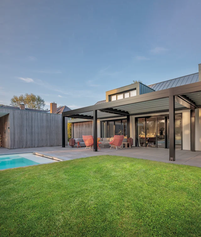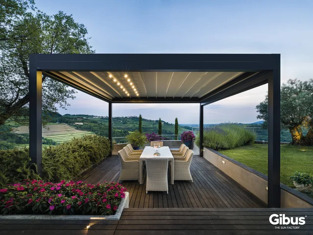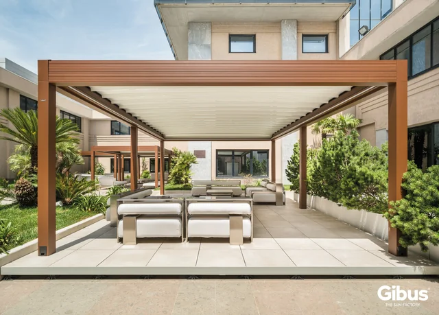 Linee decise, design contemporaneo e materiali di altissima qualità: le pergole a 90° firmate GIBUS trasformano ogni spazio esterno in un ambiente elegante e da vivere tutto l’anno. Perfettamente integrate in qualsiasi contesto — dal giardino privato alla terrazza urbana, fino agli spazi contract — queste pergole offrono protezione totale dal sole e dalle intemperie, garantendo sempre comfort, ombreggiatura e ventilazione ideali. Il telo motorizzato si apre e si chiude con estrema semplicità, mentre la struttura in alluminio robusta e minimale assicura stabilità, durata e manutenzione ridotta al minimo. Ogni dettaglio è pensato per unire tecnologia e design, resistenza e bellezza. Con le PERGOLE A 90° di GIBUS, eleganza e funzionalità si incontrano per creare spazi da vivere ogni giorno, in ogni stagione.